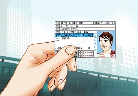 Obtain an official translation of your driver's license. Head to your local Japan Automobile Federation (JAF) branch to get your license translated. Fill out the application form, which is available in English, bring your original driver's license, and pay the ¥3,000 fee (as of 2019). You should receive your translated license the same day if you visit a JAF branch in person. Variation: Alternatively, you can download, print, and mail an application, along with a signed copy of your license and the application fee, to your local JAF branch. You'll need to pay an additional ¥500-600 for shipping, and it'll take 3 to 4 weeks to receive your translated license. Locate the nearest JAF office at http://www.jaf.or.jp/inter/entrust/index_e.htm.