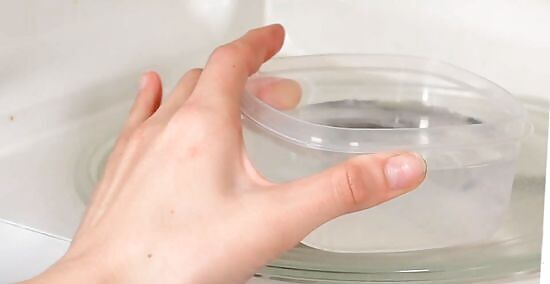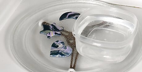Place a plastic cup of cold water in the microwave. A bit of moisture helps the clay dry evenly. Fill a microwave-safe cup with 125 ml (4.4 imp fl oz; 4.2 fl oz) of cold water and place it in the microwave as well.