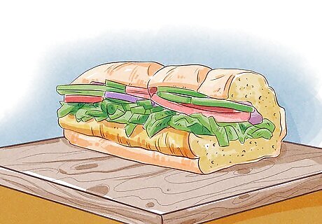 Pile on your favorite vegetables. Subway’s standard veggie options include lettuce, tomatoes, cucumbers, green bell peppers, red onions, spinach, black olives, pickles, jalapeños, and banana peppers. Some restaurants also offer items like avocado, carrots, beetroot and sweet peppers, as well. For a quick and easy meal, ask for a Veggie Delite sandwich on Italian or 9-Grain Wheat bread. The Veggie Delite is totally meat-free, so ordering it will be easier than listing every component you want individually to your sandwich artist.