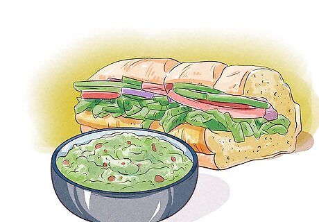Add guacamole for a serving of healthy fats. Subway’s guacamole is nothing but Haas avocados, jalapeño puree, garlic, onion, and sea salt. Not only that, but it’s full of hearty-healthy monounsaturated fats, making it as nutritious as it is delicious. There will typically be an extra charge for adding guacamole to your sandwich.