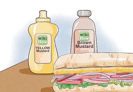 Finish with your choice of vegan-friendly condiments. A surprising number of Subway’s many condiments and sauces qualify as vegan. These include the yellow mustard, Deli Brown Mustard, Sweet Onion Sauce, Fat-Free Italian Dressing, Subway Vinaigrette, Buffalo Sauce, and oil and vinegar. Mix-and-match multiple condiments to give your favorite sandwich options a little zip.