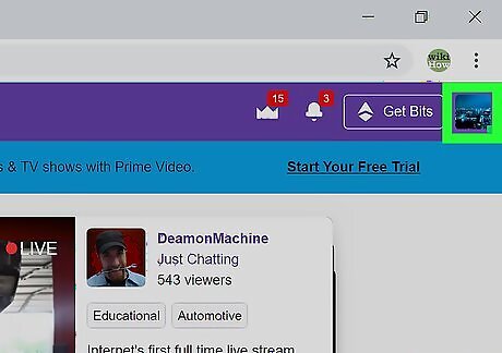 Login to https://twitch.tv in your web browser. This method works on computers, phones, and tablets. If you're using a phone or tablet, you will be redirected to the mobile site and need to switch to the desktop version. Here's how: Chrome: Tap the three-dot menu at the top right of the website below the address bar, and then tap Switch to Desktop Mode. Safari: Tap the square with an arrow at the bottom to open the sharing menu, swipe across icons, and then tap Request Desktop Site. You can also use the desktop app since the process is identical. This app icon looks like a white chat bubble on a purple background, and you can find it in either your Start menu or Applications folder.