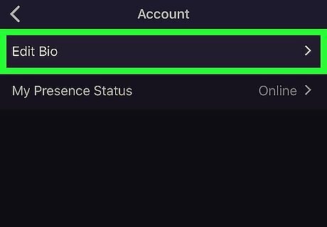 Open Twitch. This app icon looks like a white chat bubble on a purple background. You can find this on either your home screen, in the apps drawer, or by searching. While you are not able to edit as much of your profile from the mobile app as the desktop app or website, you can edit your bio.