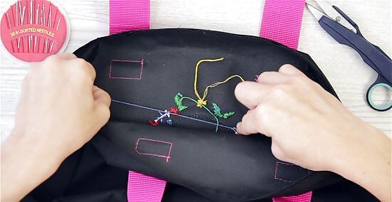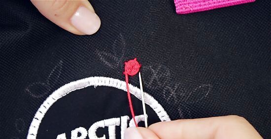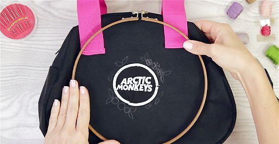 Use an embroidery hoop to hold the fabric taut if the fabric of the backpack will accommodate it. Some backpack materials are too thick to be held taut by an embroidery hoop. In that case, you'll just have to be careful how hard you pull on each stitch.