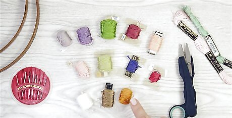 Obtain Embroidery supplies. Several needles, and a skein of each color of thread you will need for your design.