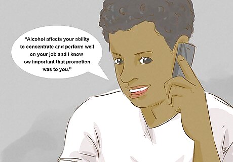Focus on health. Don't get carried away, telling the person what they have done wrong. This only puts up a wall between you. Rather, get on the same side with them by showing concern for their health and well-being. You might include statements like, “I’m worried you'll hurt yourself or someone else when you drink and drive” or “Alcohol affects your ability to concentrate and perform well on your job and I know how important that promotion was to you.”
