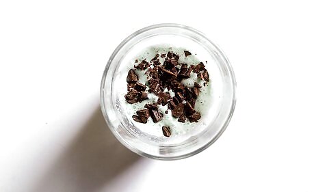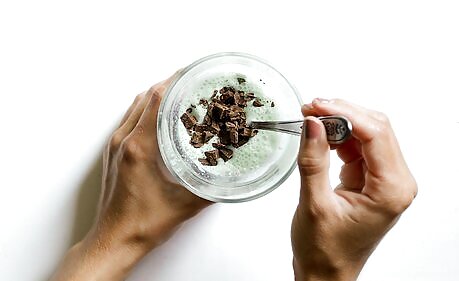 Slowly mix in bits of chocolate. Add some chocolate syrup if you like.