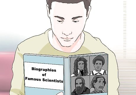 Learn about scientists. Get inspiration from biographies about famous scientists. Learn about what these scientists' lives were like and what they accomplished that brought good things to the world. Find grade-level appropriate biographies about famous scientists such as Isaac Newton, Albert Einstein, Marie Curie, Watson and Crick, and others. You can find these in bookstores or online. Watch short videos to go along with what you’re reading. There are a number of online videos dedicated to celebrating great scientists. Watch them before or after you read so you can see why that person still matters today.