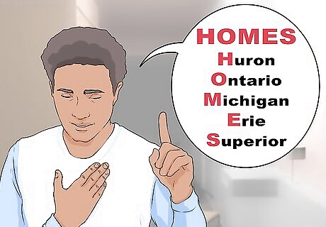 Use mnemonic devices. Make memorizing facts easier with little memory tricks, a rhyme, or an acronym. These are meant to help you remember confusing concepts, difficult terms, and hard-to-remember facts. For example, HOMES is an acronym for the 5 great lakes (Huron, Ontario, Michigan, Erie, Superior). This mnemonic device might be of big help for you to remember the planets of the solar system: My Very Energetic Mother Jumps Straight Up North (Mercury, Venus, Earth, Mars, Jupiter, Saturn, Uranus, Neptune). Be as creative and as funny as you want as long as the facts can be easily remembered.
