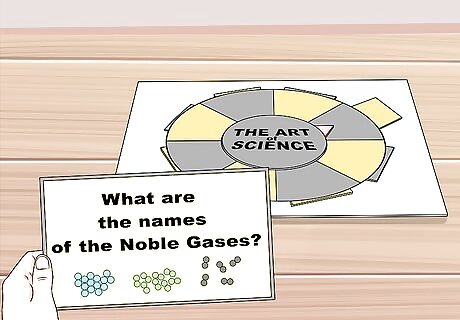 Play science games. Talk to your teacher about science games you can play with your classmates to learn and help reinforce scientific concepts. You can make up your own games, or buy some online or direct from an educational store. Help reinforce basic concepts and vocabulary with crossword puzzles, which are easily downloaded online. Create a board game with science trivia, asking questions such as “What are the states of matter?” “What are the names of the noble gases?” or anything that pertains to what you are studying in class.