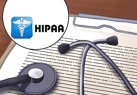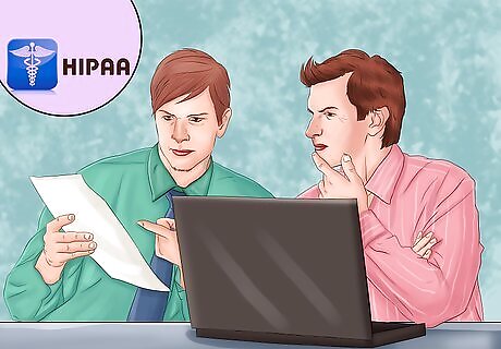 Provide copies of written guidelines and policies to employees. Each employee should have his or her own copy of the policy for reference. HIPAA requires a written policy, and this must be shared with all employees who have access to private medical information. You should review and update your policies regularly to conform with HHS regulations or opinions. All employees must be trained and quizzed on the policy and on HIPAA requirements before they begin working with private medical information. Keep in mind that other individuals who may have access to private medical information, including volunteers or interns, also must have training regarding HIPAA requirements, even if you don't pay them or consider them employees.