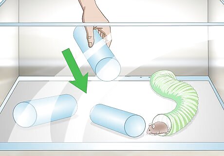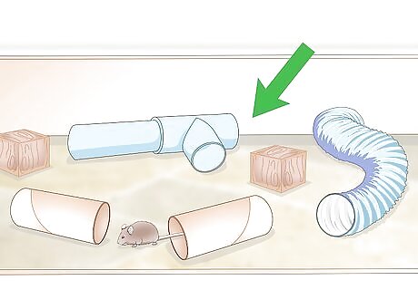 Get tubes for your gerbil to run through. Because gerbils like digging, burrowing, and moving through tunnels, they’ll really enjoy playing in gerbil tubes. Ultimately, the larger and more complex the system of tubes you install in your habitat, the more exercise your little friend will get. In addition, you’ll have a lot of fun installing it and watching your gerbil run around the tubes.