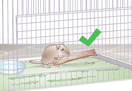 Provide your gerbil with untreated wood to chew. Place an untreated piece of wood in your gerbil’s cage. For more fun, place small pieces throughout the cage. Then, watch as your gerbil chews them. This will entertain you and help exercise your little friend.