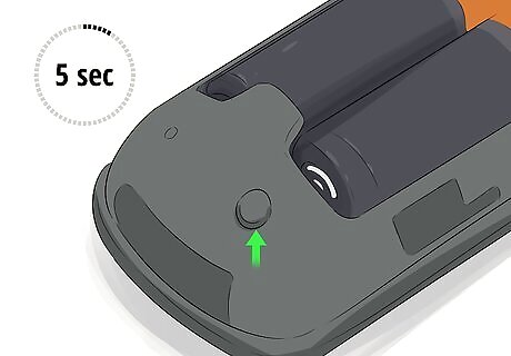 Press and hold this button for five seconds and pairing will begin. A green light will then start flashing on the top side of the remote, confirming this.
