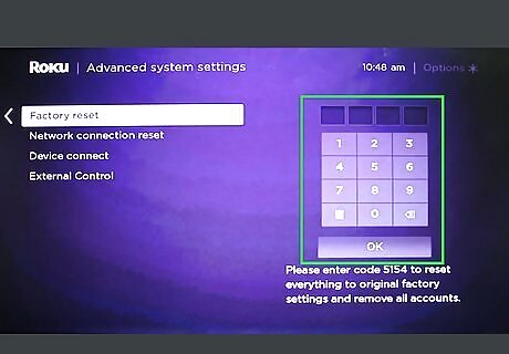 Enter the four digit code and press enter. Your Roku will be reset!