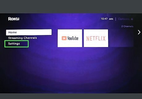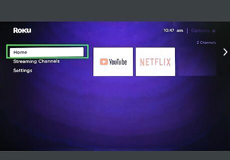 Navigate to the Roku home screen. This is done by pressing the house symbol on your Roku remote.