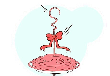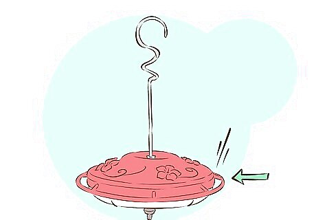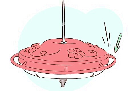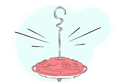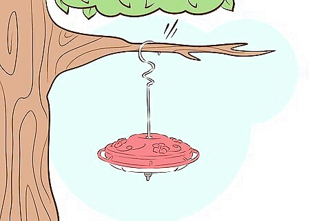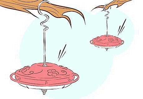 Place several different feeders in different areas. Hummingbirds tend to be very territorial. If you only have one feeder, you may find that one alpha hummingbird drives away the smaller birds from the nectar. To get around this, invest in a few different feeders and put them in different areas of your yard. If they're out of sight, that's even better. Have one in your front and back yards if possible, or at least in faraway trees.