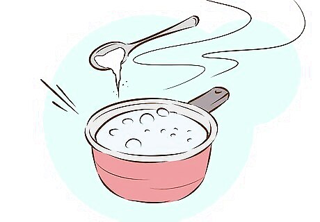 Make your own hummingbird nectar. While you could buy store-bought hummingbird nectar, it's ridiculously easy to make your own and much cheaper – it's just sugar water. And you can make it in bulk if your little birdies go through quite a lot – it'll keep for around a week. Most experts suggest a ratio of 1 part sugar to 4 parts water. You simply bring it to a boil and let the sugar dissolve (see the linked wikiHow guide in the bolded step). However, some sources do suggest adding just a bit more sugar during colder months to give the birds more energy. But not too much – too much more and it gets syrupy and spoils quickly. Do not use anything besides plain sugar (can be toxic for the birds) and do not use red food coloring.