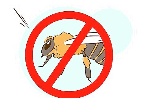 Keep away the bees. Bees are another unwanted animal that you'll have to keep away from your feeder – they'll even be territorial with the birds. They're harder to get away than ants. In general, there are three things you can do: Keep the feeder clean at all times. Residue from splashing and dripping will attract the bees. Place a saucer of sugar water (a 1:1 ratio, much stronger) elsewhere in your yard. Buy a feeder that has tubes. Only the hummingbirds will be able to get into the tubes to the sugar water and the bees won't sense the delicacy.