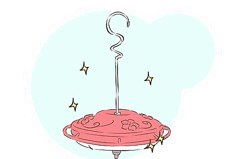 Select a bottle or saucer-style feeder. You want to choose a style that can be disassembled for easy cleaning and one that will hold two to three days' worth of nectar, or about 6 to 12 ounces. In general, the saucer-styles drip less, create less mess, and attract fewer bugs. Or you could make your own. Whichever style you choose, just make sure it's red (most are). Red naturally attracts hummingbirds.