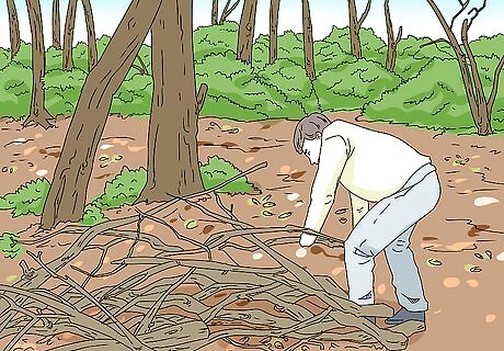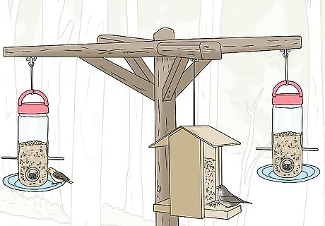 Create a shelter for wildlife with a brush pile. After pruning trees and bushes around your yard, consider building a pile with the trimmings. Such a brush pile can provide a great place where critters can seek shelter between their feedings. Locate the pile about 10 feet (3.0 m) from your feeders. This pile of twigs will be an attractive shelter for insects, birds, squirrels, and rabbits.