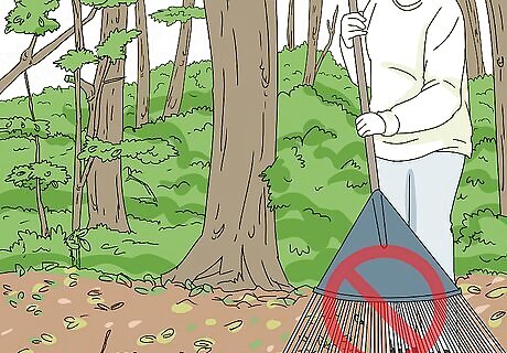 Skip the autumn ritual of leaf raking to create a place for foraging. Nothing symbolizes autumn more than raking leaves, but if you want to feed wildlife during the cold-weather months, leave your leaves alone. A layer of leaf litter on your yard is a fantastic habitat for caterpillars and other bugs. Keeping your leaves around throughout the autumn and winter will ensure that squirrels, rabbits, and other critters have a place to forage for food. If raking leaves off your lawn is unavoidable, you can rake them from your yard to your garden beds, or leave just a small section unraked. Raking can also disturb rabbit nests.