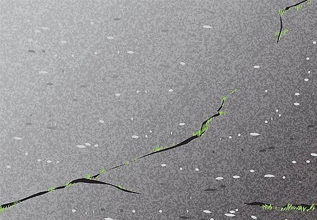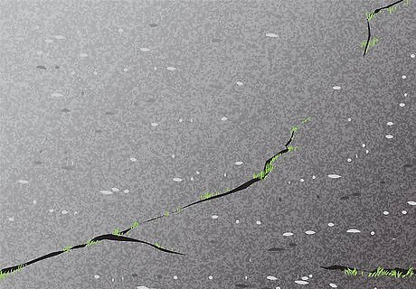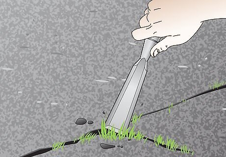 Use the chisel or screwdriver to dig out vegetation. Dig out growing vegetation with your chisel or screwdriver. This will help the melt-in filler adhere to the sides of the crack.