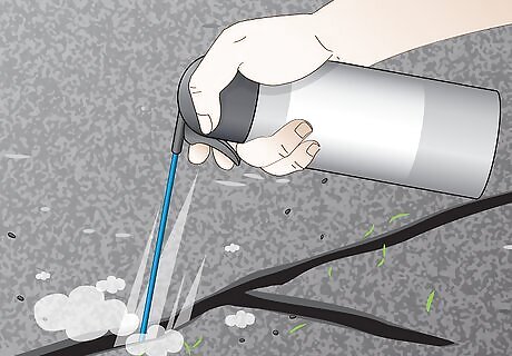 Blow compressed air into the crack. Using the compressed air can, blow as much debris as you can out of the crack. Make sure the crack is completely free of debris. Otherwise, the sealant will stick to the debris, not the walls of the crack.