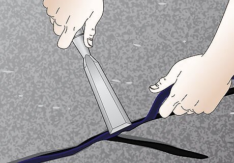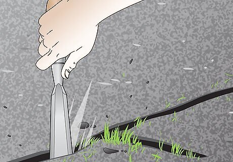 Remove vegetation or jagged pieces of asphalt with a chisel or screwdriver. If vegetation is growing in the crack, or jagged pieces of asphalt are sticking out into the crack, use a chisel or screwdriver to force them out. If a piece of asphalt falls in, be sure to pull it out. You don't want your sealant to stick to something loose, as this will make it less stable.