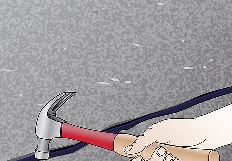Hammer the rope into the crack. Use the hammer to smash the rope down into the crack about .10 inches (2.5 mm) below the surface of the crack.
