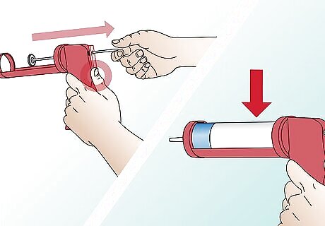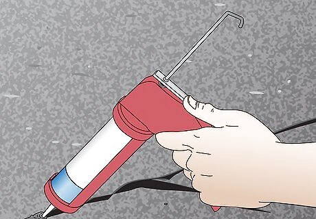 Load the asphalt sealant into the caulk gun. Pull the rod on the gun all the way back and insert the tube of sealant base-first. Squeeze the trigger to test the caulk gun. The sealant should flow easily out of the tip. If not, try checking the seal again.
