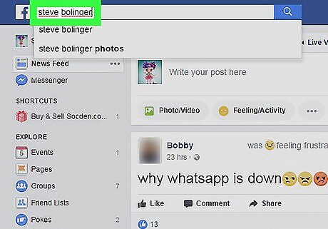 Go to your friend's Timeline. You can find it in a few different ways: Search for their name using the search bar at the top of the screen. Click the Friends link on your own Timeline to view your friends list, then click your friend's name. Click your friend's name where it appears in the news feed.