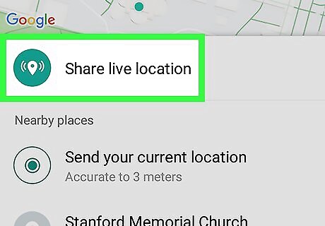 Tap Share live location. This will send a location link to your contact. They can open the link and view your current location on a map. When you share live location, your location on the map will move with real-time updates as you move around. Alternatively, you can select Send your current location. This will share your current location with your contact. Unlike sharing live location, your location will not be updated.