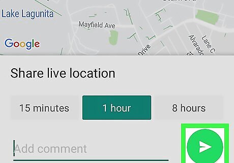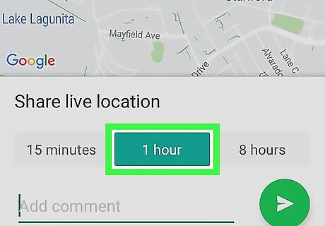 Select how long you want to share your location. You can share it for 15 minutes, 1 hour, or 8 hours. You can also type a message in the "Add comment" field here.
