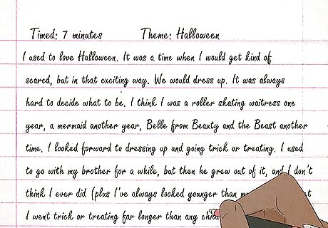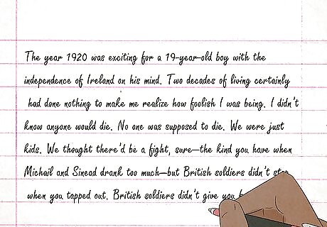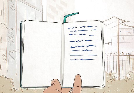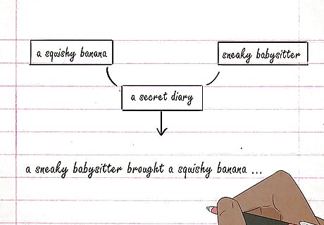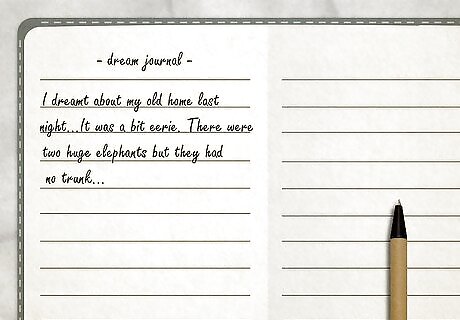 Write about the dream you had last night. The plotlines for numerous famous stories and novels were hatched in the dreams of their author's. It may seem unlikely, but your dream could become a bestseller someday! Keeping a journal and pen on your night stand right before you go to sleep is helpful. If you have an insane dream that you must write down, grab your journal and start writing. The dreams don't have to be recent. They can also be ones that you remember from your childhood or many moons ago.