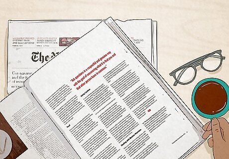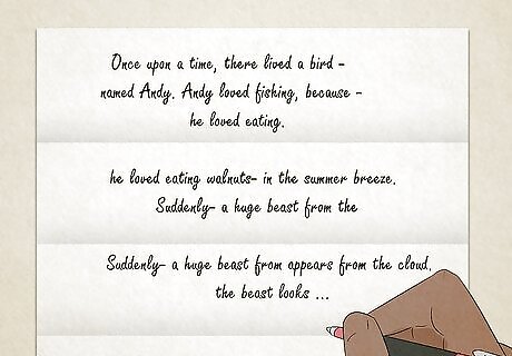 Watch random people walk down the street and write a pretend life story for them. It may seem strange, but you never know where doing this might lead by way of a character leading a curious life. If there aren't people around, try Googling up pictures of random people and using them instead. Try people watching when at your favorite coffee shop or while waiting for a bus. These don't have to be stories that take forever to write, either. You can just quickly jot down ideas or doodle things that interest you or that you think would make for a good story. Judy Blume Judy Blume, Writer Draw inspiration from observation. "Observe. Make notes. Listen carefully. Listen to how people talk to one another. A good writer is always a people watcher."