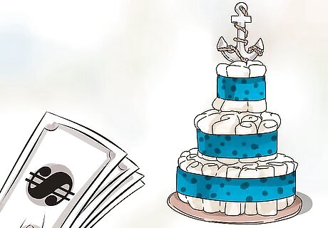 Ask the parents for input. Ultimately, you want the centerpiece to appeal, and perhaps even be useful, to the parents-to-be. Consider what you already know about them, and ask them them questions about what they may want or need. If the parents have a more elegant taste, go with something which matches that style, like a fancy floral arrangement or a princess theme. For a young and fun couple, or a hipster style, choose something like the mustache theme, owls, or colorful bird cages for their new nesting baby! The new baby may bring some financial stress to the new parents. In this case, choose a centerpiece which is also practical and useful like a diaper cake, story books, or toys.