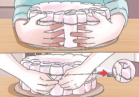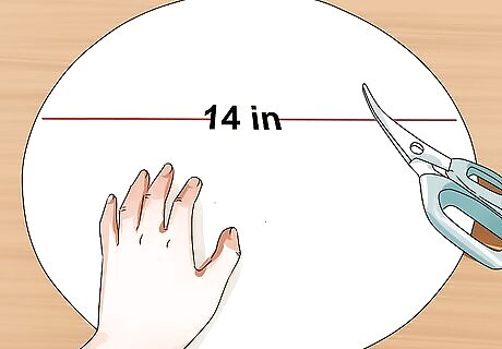 Create a base. Cut a 14 inch circle out of a piece of cardboard. Attach a paper towel roll on it's end to the center of the base using hot glue. Press the end of the roll firmly into the base, while making sure that the paper towel roll is perfectly perpendicular to the base. Allow this to dry into a sturdy support system while you prepare the first layer of diapers.
