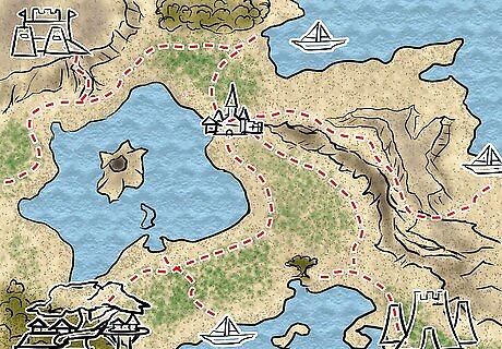 Decide how much interest and influence the region has with the rest of the world, if any, and how the rulers, ambassadors, and dignitaries go about achieving their goals. What interaction does the region have with its actual geographical neighbors? Are they a conquering empire or do they trade and interact peaceably? Are there old feuds or alliances? Could they care less about each other?Flesh out a Country or Region in Your Fantasy RPG World Step 6.jpg