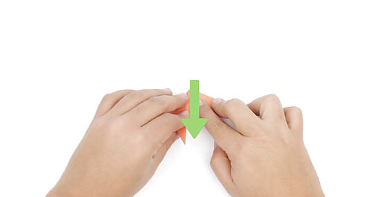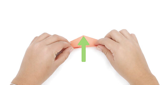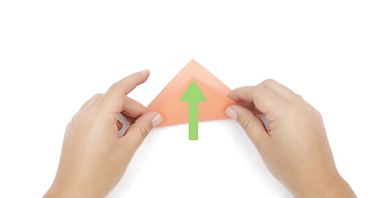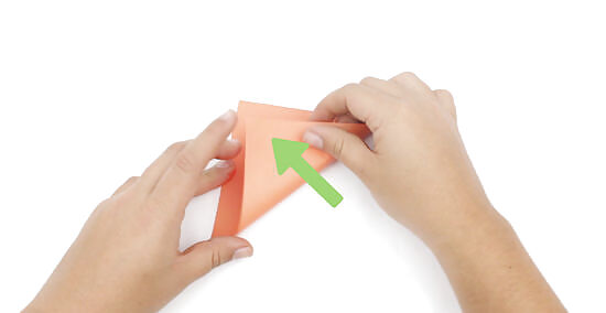 Fold the 2 sides in half to create 1 triangular shape. Run your finger along the flat edge of the triangle to crease the fold and keep the whole unit folded together. Place the triangle shape in front of you with the flat edge on the bottom and the point on top.