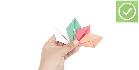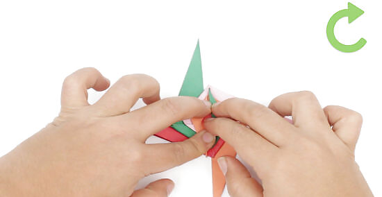 Keep folding until you get to the tips of the paper. Complete as many rotations as you can until the ends become too small to fold. With 6 by 6 in (15 by 15 cm) paper, you’ll likely be able to do 3-4 rotations.