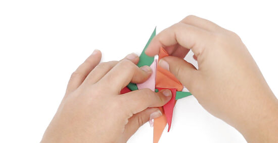 Pinch the 2 sides by the folded ends and twist, then pull slightly. Twist the ends in a clockwise direction until they hold together. This will help prevent your folds from coming apart. While you’re still holding the ends, gently pull the folds apart, extending the spiral so you can see each layer individually. You’re done! Be careful not to pull too forcefully or too far, or the thin paper could tear.