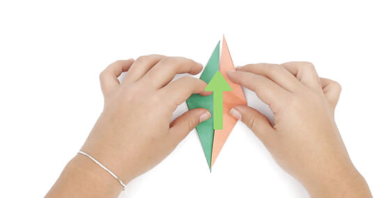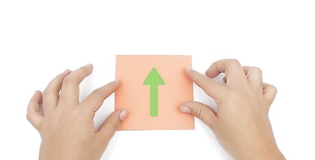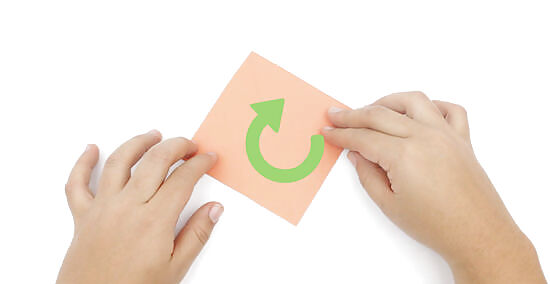 Lay the paper in front of you again, white side facing up. Turn the paper so it’s oriented like a diamond shape (with the points facing up and down), rather than a square. If you’re not using origami paper, make sure the side with the small mark is facing up.