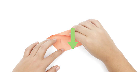 Repeat this fold on the bottom with the lower left edge. Bring the edge in line with the center crease, lining up the 2 edges neatly. Press down on the fold to make a clean crease.