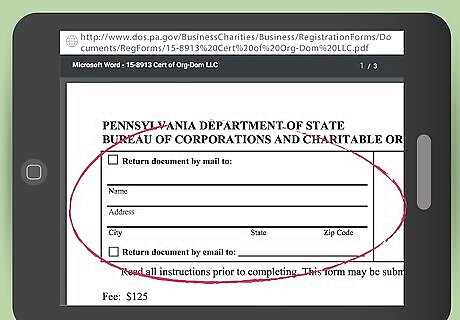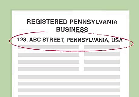 Determine a street address. Pick a Pennsylvania street address to receive your mail. A post office box is not valid. If you haven't rented office space, use the house of one of your members. Any Pennsylvania street or rural route box address is valid.