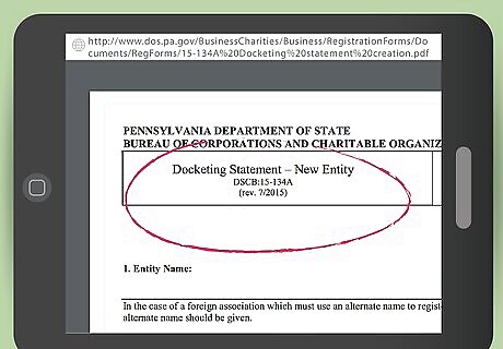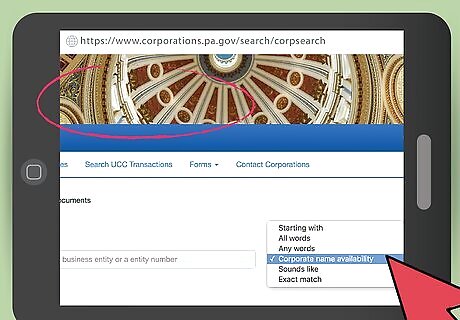 Check your name's availability. Look online to see if your chosen LLC name has already been taken. Search your name at the Pennsylvania Department of State business name database. Type the name into the space labeled "Business Entity Name/ID," then select "Corporate name availability" in the drop-down menu. Search similar-sounding names to make sure your business will be easily distinguished from other local LLCs. Applications for businesses with names that are too similar to existing businesses will be rejected by the state of Pennsylvania. Call the Bureau of Corporations at (717) 787-1057 for help.