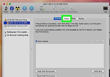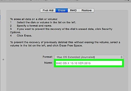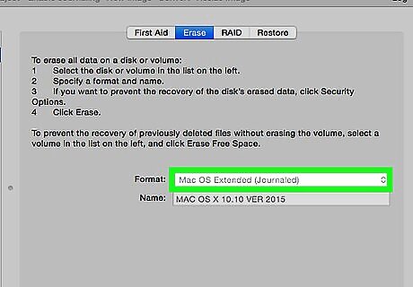 Click Erase. It's the middle button at the top of the Disk Utility. This will prompt a pop-up window allowing you to choose how you want to format your hard drive.