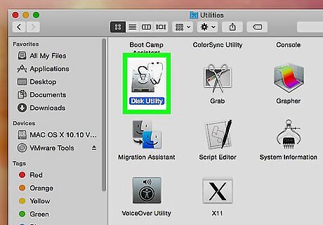 Double-click Disk Utility. It's the app with the icon of a hard drive and a stethoscope and is located in the center of the Utilities folder. This opens the Disk Utility app on your Mac.