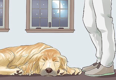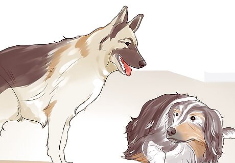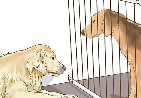 Keep them separated when unsupervised. After the initial introductions are concluded, you can let both dogs off their leases if there are no signs of agitation. They will likely continue to sniff each other and play. However, when you move indoors it is a good idea to separate the dogs if you are not in the room and during meal times as well. You can separate the dogs by using baby gates, closing certain doors, or even crating both of them for periods of time.