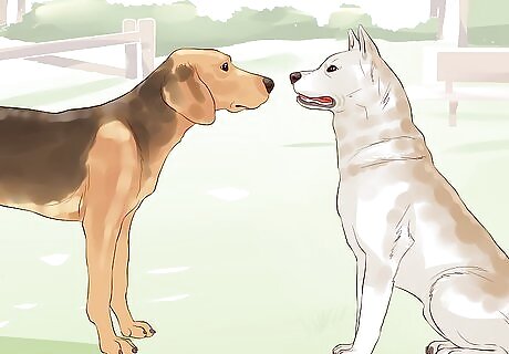 Watch for any signs of aggression. Pause and pull the dogs back a bit (gently) if there are any signs of distress or agitation, such as growling or lunging. Ideally, the dogs will show a degree of curiosity and will keep their tails wagging the entire time.